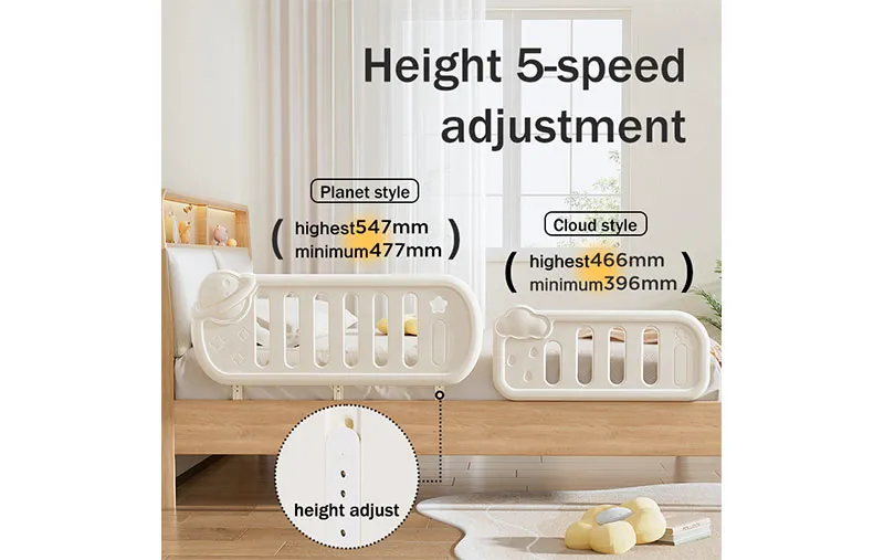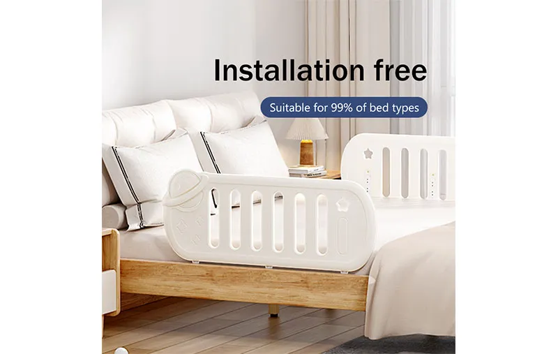 009 infant bed guard rail, a portable bed guard, features installation - free setup, 99% bed type adaptability, 5 - speed height adjustment, HDPE material for safety, and ensures baby's sleep security. Fence length: 88/120 cm Fence width: 38 cm Fence height: 39/47 cm Material: HDPE