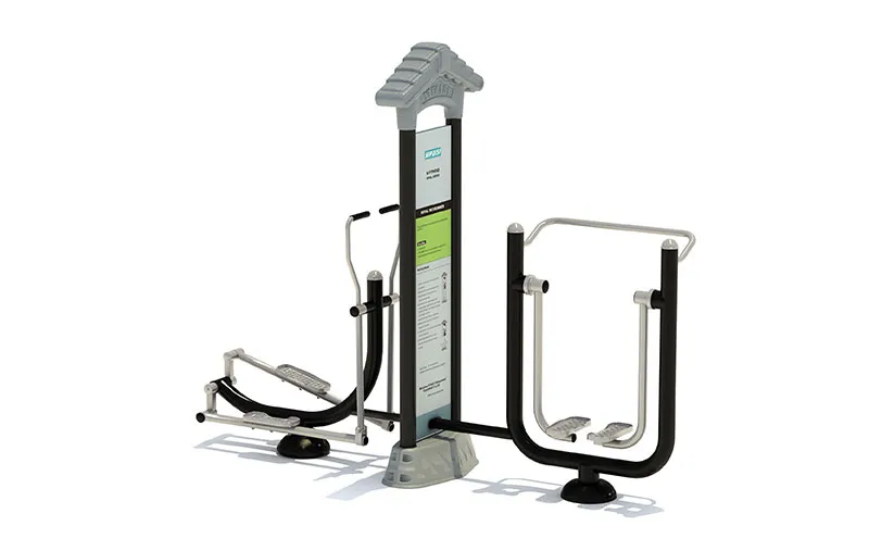 Luxury outdoor fitness equipment with dual-column design, featuring: • The instruction board is printed on aluminum plate • Col customized Key Benefits:Elliptical: Low-impact cardio that works upper/lower body while protecting joints. Elliptical Trainer: Natural stride motion strengthens legs and improves cardiovascular health, with premium branding solutions for high-end properties.