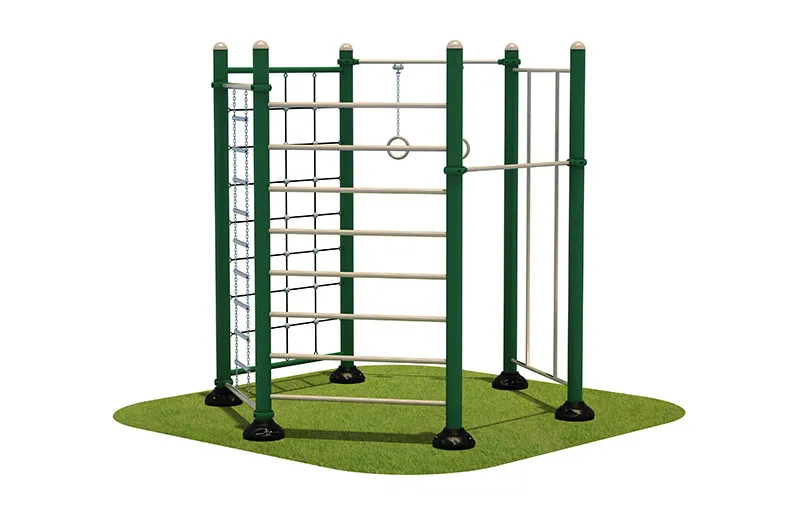 All-in-one outdoor fitness equipment combining climbing net, parallel bars and pull-up bar for full-body workouts. • Climbing net improves coordination • Parallel bars build arm strength • Pull-up bar develops back muscles • Custom color combinations available Key Benefits: Integrated training system perfect for group exercise in parks.